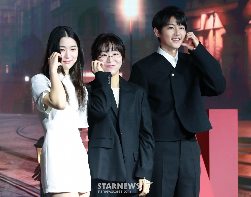 넷플릭스 오리지널 영화 '로기완'(감독 김희진)은 27일 오전 서울시 마포구 호텔 나루 서울엠갤러리에서 제작발표회를 진행했다. 이날 송중기, 최성은, 김희진 감독이 참석했다.
