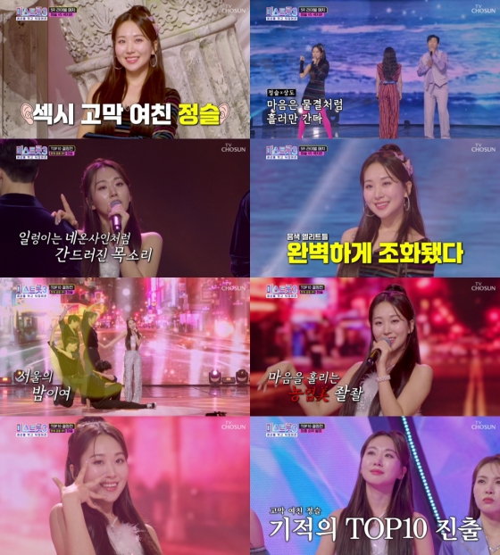 이어지는 TOP 10 결정전에서는 한혜진의 '서울의 밤'으로 전매특허 가창력과 퍼포먼스까지 모두 챙겼다. 무대 시작 전 "이 무대를 통해 제가 누구인지를 꼭 보여드리겠다"며 각오를 밝힌 정슬은 섹시한 목소리로 무대의 포문을 열며 현장의 분위기를 후끈 달아오르게 했다.