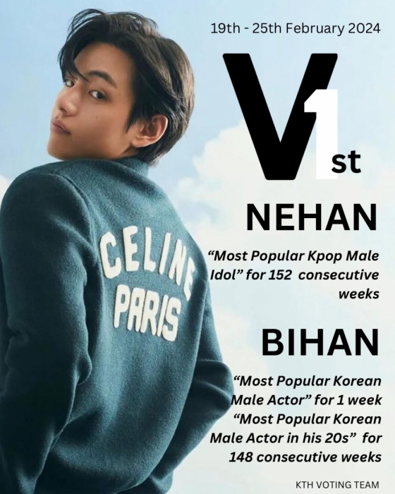 뷔는 지난 2월 19일부터 25일까지 일본 인기 아이돌 랭킹 사이트 '네한'(NEHAN)에서 실시한 K팝 남자 아이돌 랭킹 투표에서 1만 9999표를 얻어 1위를 차지, 152주 연속 1위의 대기록을 세웠다.