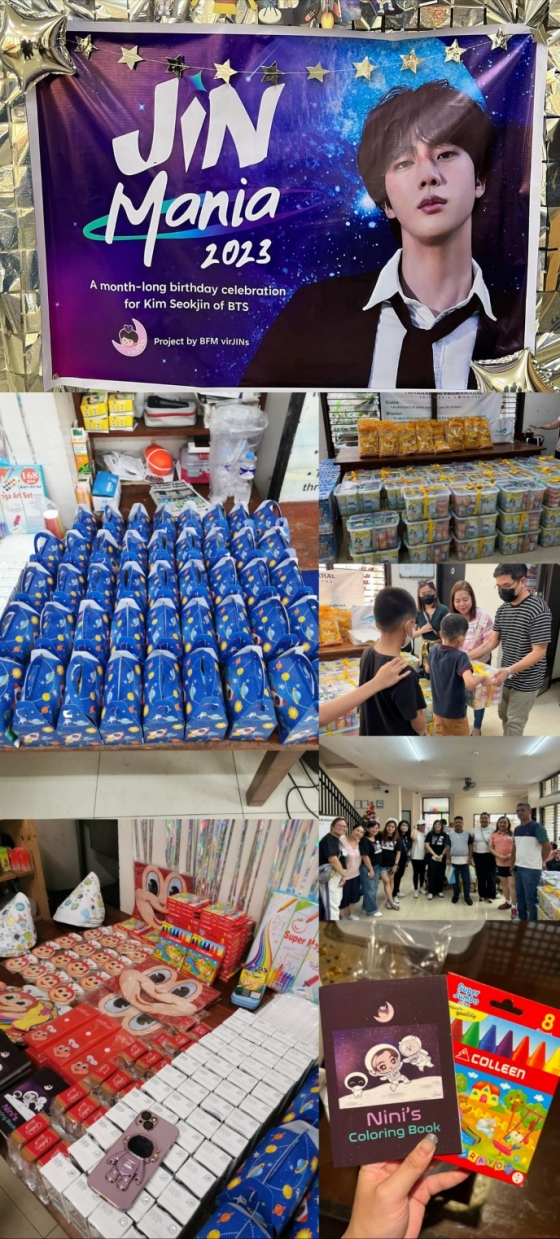 'virJINs'은 앞서 지난해 12월 4일 진의 생일을 맞아 사회적으로 소외 방치된 아동을 위한 보호 기관인 필리핀 '파마 마할(Tahanan ng Pagmamahal)' 보육원에 쌀, 우유 등 식품과 장난감, 학용품 등 아이들의 기본 필수품을 기부한 바 있다.