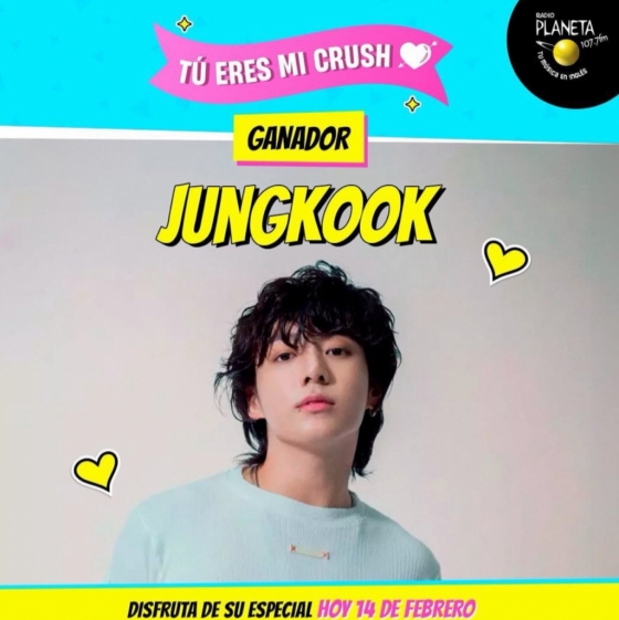 정국은 최근 페루 라디오 방송 'Radio Planeta 107FM' 공식 SNS를 통해 진행된 '가장 사랑에 빠지게 만드는 셀러브리티' 토너먼트 투표에서 1위를 차지했다.