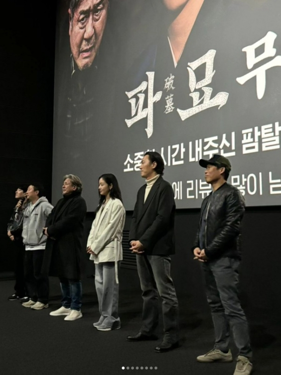 사진 속에는 '파묘' 출연 배우 최민식, 김고은, 유해진 등이 '파묘' 상영관을 찾아가 관객들에게 직접 영화를 소개하고 인사하는 모습이 담겨 있었다.