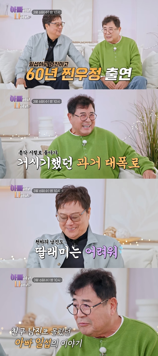 그런가 하면 몰랐던 백일섭 부녀의 사연을 '아빠하고 나하고'를 통해 알게 된 후 챙겨보고 있다고 밝힌 남진은 "일섭이 형이 그동안 그런 일이 있었던 건 몰랐다. 마음이 거시기하다"라며 미안함을 드러내기도 했다.