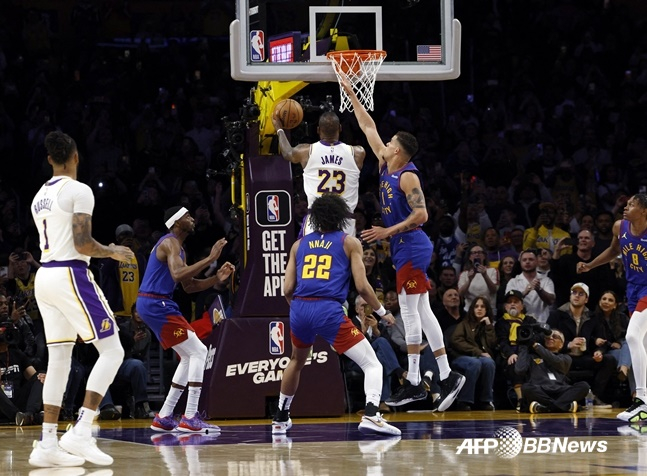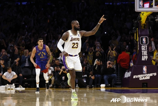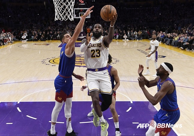 제임스는 3일(한국시간) 미국 캘리포니아주 로스앤젤레스의 크립토닷컴 아레나에서 열린 덴버 너기츠와 2023~24시즌 NBA 정규리그 홈 경기에서 26점을 넣으며 통산 4만 득점을 돌파했다.