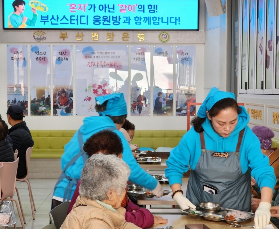 부산영웅시대 '스터디하우스'는 부산연탄은행(밥상공동체)에서 독거노인들을 위해서 3년 가까이 봉사하고 있으며 매달 둘째 수요일에 70만 원 정기적 후원과 조리, 배식 및 청소하는 봉사를 진행하고 있다. 특별한 기념일에는 특별 기부와 김장 봉사, 연탄 기부 등을 통해 선한 영향력을 실천하고 있다.