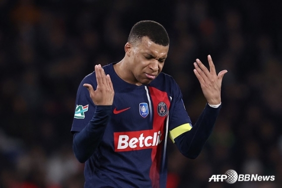 킬리안 음바페가 경기 도중 아쉬운 모습을 보이고 있다. /AFPBBNews=뉴스1