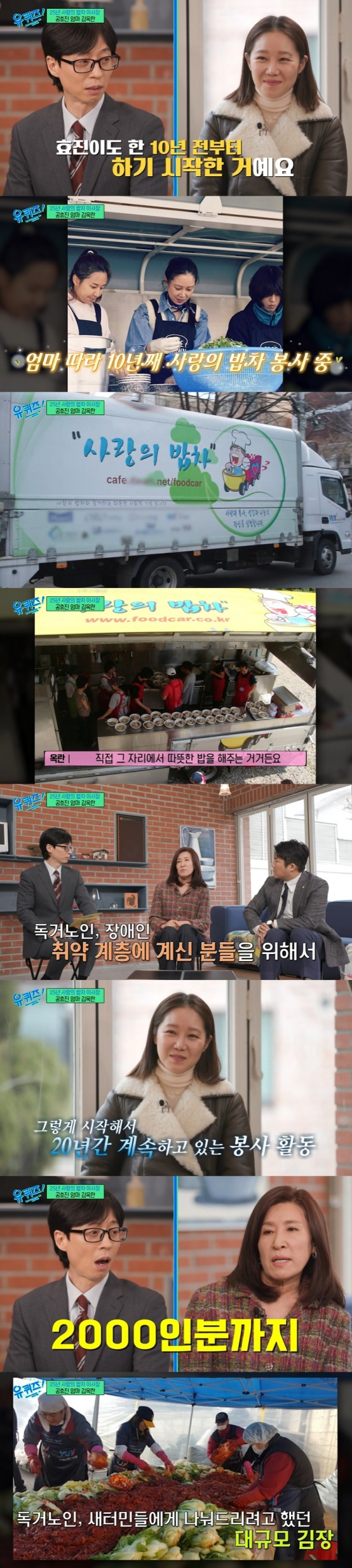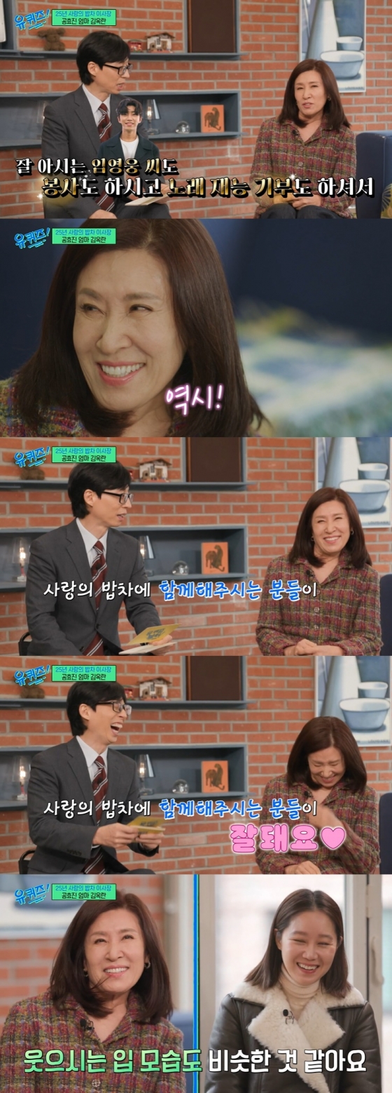 지난 3일 방송된 tvN '유 퀴즈 온 더 블록'(이하'유퀴즈')에서는 '사랑의 밥차' 이사장이자 공효진의 어머니인 김옥란 씨가 게스트로 출연했다.