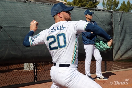 NC 다이노스의 새 외국인 투수 대니얼 카스타노(30)가 한국에서의 첫 투구를 진행했다. 호평 속에서도 개막전 선발 등판은 어렵게 됐다.