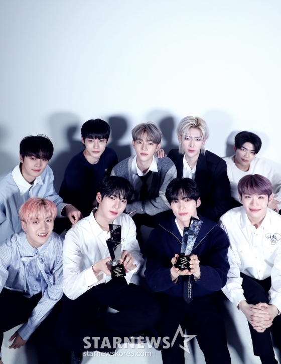 그룹 제로베이스원(ZEROBASEONE)이 서울 종로구 스타뉴스 사옥에서 진행된 '2023 아시아 아티스트 어워즈 인 필리핀'(2023 Asia Artist Awards IN THE PHILIPPINES, 이하 2023 AAA) 수상 인터뷰에 앞서 포즈를 취하고 있다.