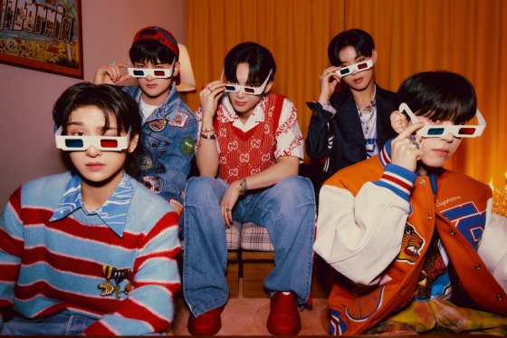 단체 콘셉트 포토에선 다섯 멤버의 케미스트리가 돋보인다. 3D 안경을 비스듬히 걸친 채 정면을 응시하고 있는 이들은 개성 넘치는 매력으로 이목을 집중시켰고, 자유분방한 에너지까지 발산하며 남다른 끼를 펼쳐냈다.