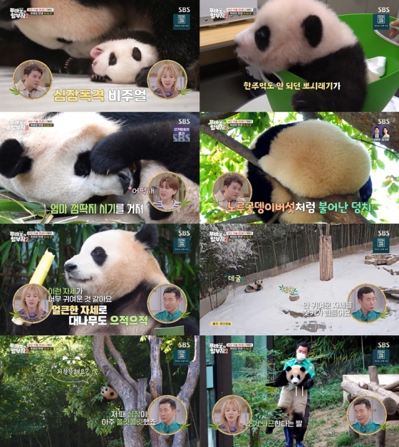 수많은 매체에서, 프로그램에서, 눈 감고도 그릴 수 있을 만큼 푸바오에 대한 성장기 순간들을 노출했었지만, 그래도 또 보게 되는 푸바오의 탄생과 성장기, 그리고 현재의 모습을 담은 영상들을 보면서 MC들과 강 사육사, 그리고 찐 푸덕 산바오 산다라박은 함께 웃고, 아쉬워하고, 눈물을 훔쳤다. 산다라박이 벤치에 앉아 얼큰한 자세로 대나무를 먹는 모습을 보며 너무 귀엽다고 하자, 강 사육사는 푸바오는 어느 한순간도 안 귀여운 자세를 찾기가 어렵다며 맞장구를 쳤다. 또 강 사육사는 푸바오가 좀 더 성장해 드디어 나무 위로 올라가 매달리던 순간, "저 때 심장이 아주 쫄깃쫄깃했죠"라며 당시를 회고하기도 했다.