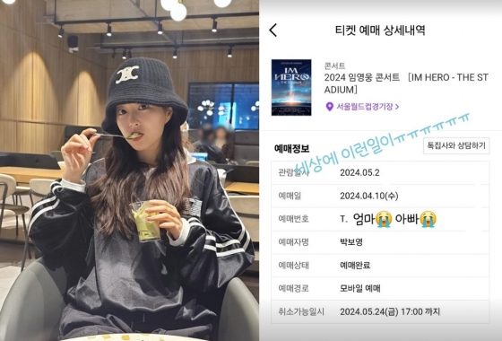 이날 오후 8시 인터파크 티켓을 통해 2024 임영웅 콘서트 'IM HERO - THE STADIUM'(아임 히어로 - 더 스타디움) 콘서트 티켓이 오픈됐다. 임영웅의 콘서트는 워낙 치열한 티켓팅으로 유명해 '피켓팅'이란 별칭을 갖고 있다. 박보영은 이번 콘서트 티켓팅에 성공했다는 사실을 알리며 감격해하는 모습을 보였다.