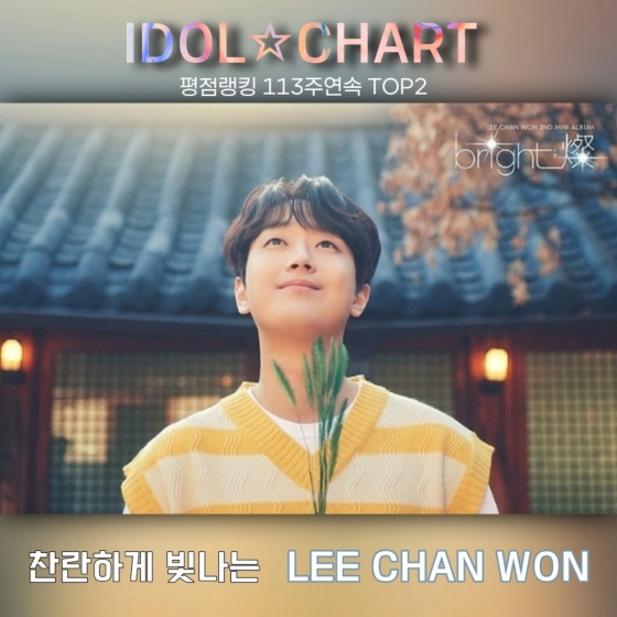 가수 이찬원이 아이돌차트 평점랭킹 113주 연속 톱2를 기록하며 인기를 빛냈다.