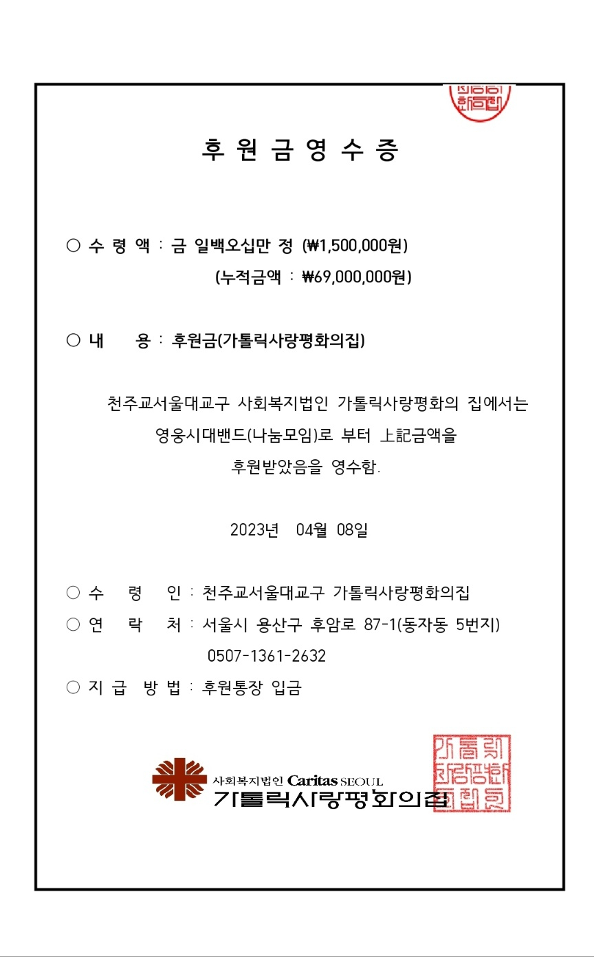 임영웅 팬클럽 '영웅시대 밴드'는 4월 8일 서울 용산구 동자동 천주교서울대교구 가톨릭사랑평화의집에서 62번째 도시락 봉사를 했다.