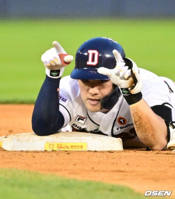 두산은 5회말 3점을 뽑으며 승기를 잡았다. 1사 1,3루 기회에서 강승호가 좌익수 키를 넘어가는 적시 2루타를 친 뒤 후속 양석환이 좌측 펜스를 직접 때리는 2타점 적시 2루타를 터트렸다. 앞서 6경기 연속 무안타에 그쳤던 양석환이 부진의 늪에서 제대로 탈출한 순간이었다. 점수는 5-1이 됐다.