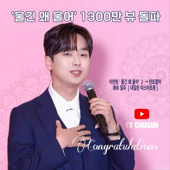 가수 이찬원의 '울긴 왜 울어' 무대 영상이 1300만 뷰를 달성하며 감동을 이어갔다.