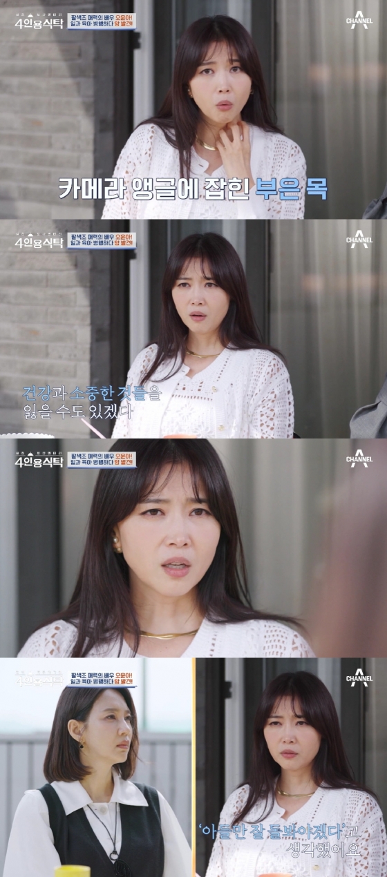 15일 오후 8시 10분에 방송되는 채널A '절친 토큐멘터리─4인용식탁'(이하 '4인용식탁')에서는 배우 오윤아가 주인공으로 출연해 다양한 이야기를 나눴다.