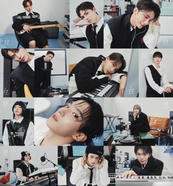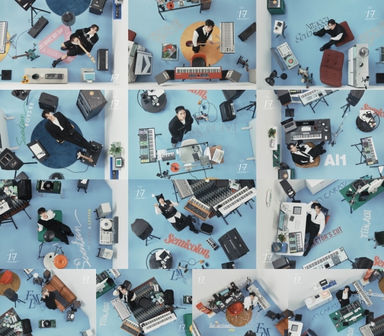 이 사진에서 세븐틴은 기타, 키보드, 턴테이블, 스피커 등 음악에 관한 다양한 물건으로 둘러싸여 도회적인 매력을 뽐낸다. 하늘색이 도드라진 배경이 부드러운 느낌을 주고, 무채색 의상을 입은 세븐틴 멤버들은 세련된 분위기를 자아낸다.