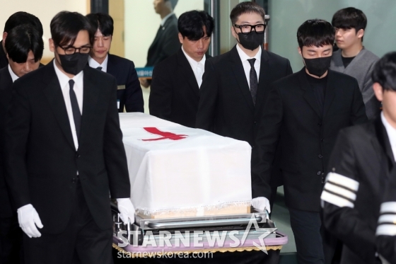 이외에도 현장에는 허영지 자이언트핑크 고은아 등이 먹먹한 모습으로 발인식에 함께 했다.