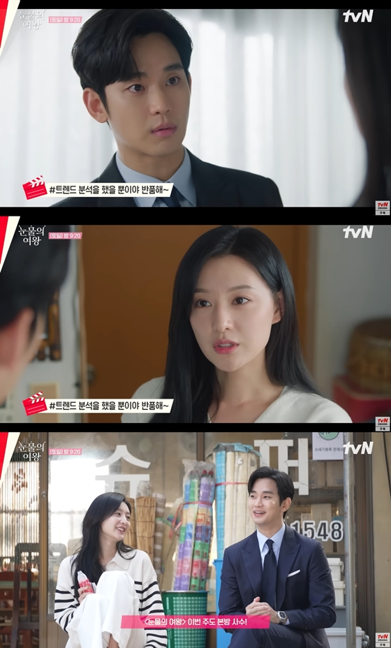 '눈물의 여왕'이 흥행 가도를 이어가고 있는 가운데, 주연 김수현과 김지원의 반품 불가 매력이 공개됐다.