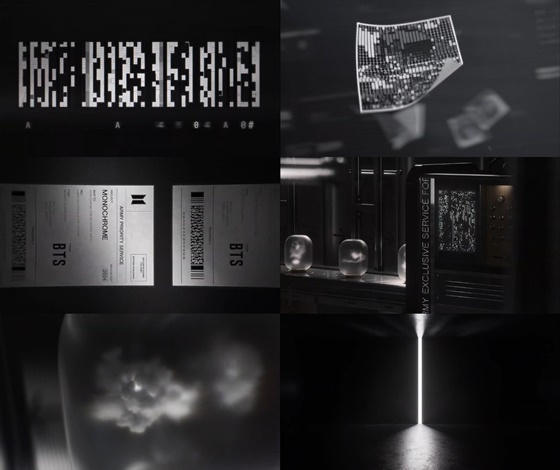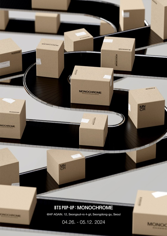 포스터에는 이전에 공개된 적 없는, 멤버들의 입대 전 촬영된 방탄소년단의 흑백 사진이 담겼다. 또 다른 포스터는 'MONOCHROME'이라고 적힌 상자가 컨베이어 벨트 위를 지나가는 것처럼 디자인돼 팬들의 궁금증을 자극했다.