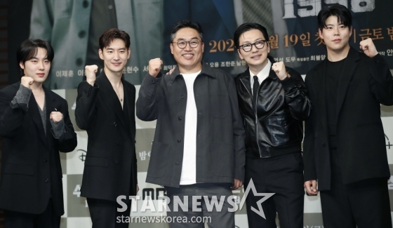 MBC 새 금토드라마 '수사반장 1958'(기획 장재훈, 홍석우/연출 김성훈/극본 김영신/크리에이터 박재범/제작 ㈜바른손스튜디오)은 18일 오후 2시30분 서울 상암동 MBC 1층 골든마우스홀에서 제작발표회를 열었다. 현장에는 이제훈 이동휘 최우성 윤현수와 김성훈 감독이 참석했다.