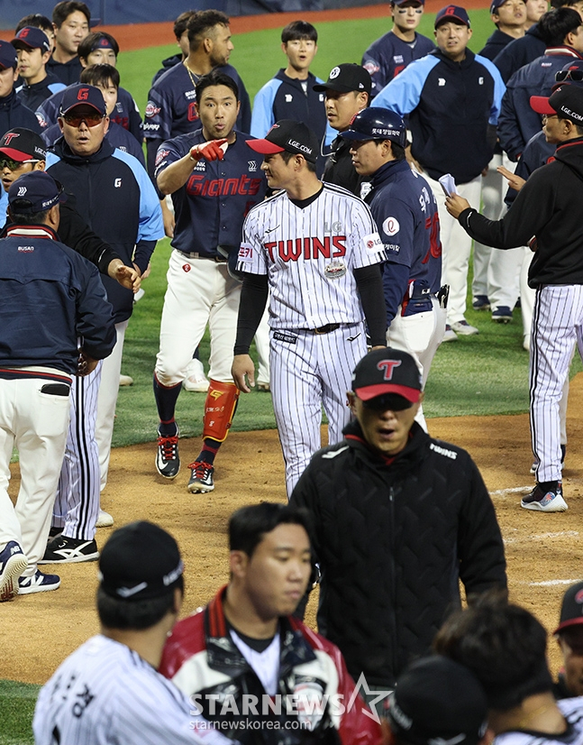 롯데 자이언츠와 LG 트윈스의 경기 도중 벤치클리어링이 발생했다.