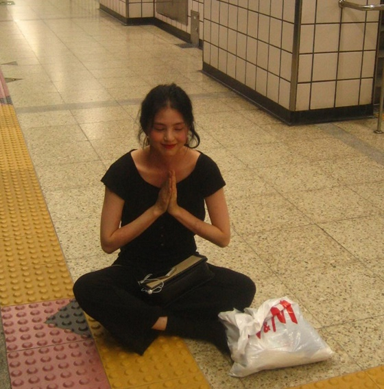 특히 한소희는 지하철 플랫폼에서 명상을 하고 있어 눈길을 끌었다. 그는 바닥에 그대로 주저앉아 가부좌를 틀고 명상을 하고 있다. 명상을 하며 여유를 찾은 듯 밝은 미소를 짓고 있다.