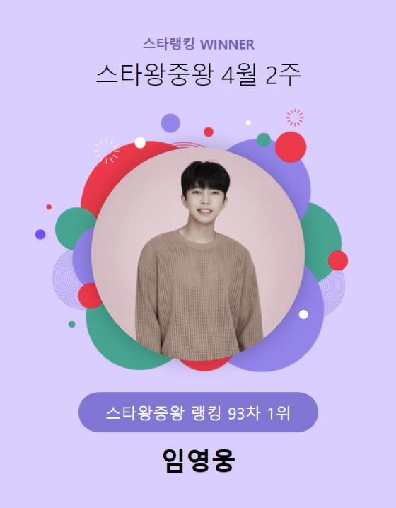 임영웅은 4월 12일 오후 3시 1분부터 4월 19일 오후 3시까지 진행된 4월 2주차(93차) 스타왕중왕 랭킹 투표에서 1위에 등극했다.
