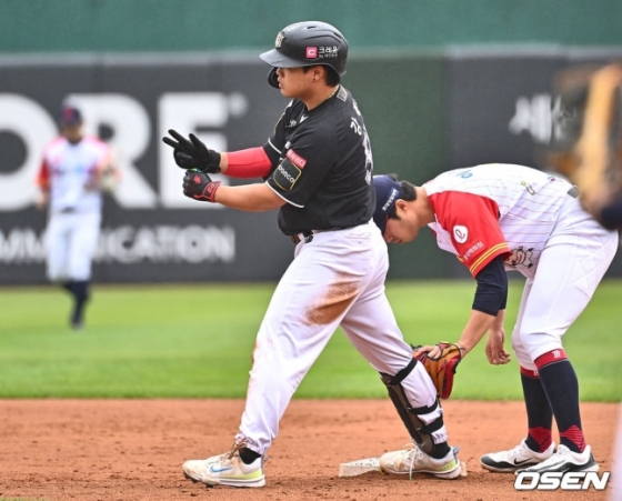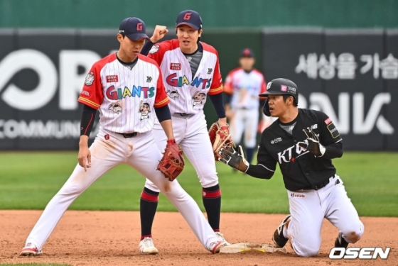 KT는 3회초 승부를 뒤집었다. 1사 후 김상수가 롯데 선발 윌커슨을 상대로 볼넷을 골라낸 뒤 천성호가 우익선상 안쪽에 떨어지는 2루타를 쳐냈다. 이어진 무사 2, 3루에서 김민혁의 유격수 땅볼 때 3루 주자 김상수가 홈인, 승부를 1-1 원점으로 돌렸다. 계속해서 강백호가 우중간 적시타를 쳐내며 승부를 2-1로 뒤집었다.