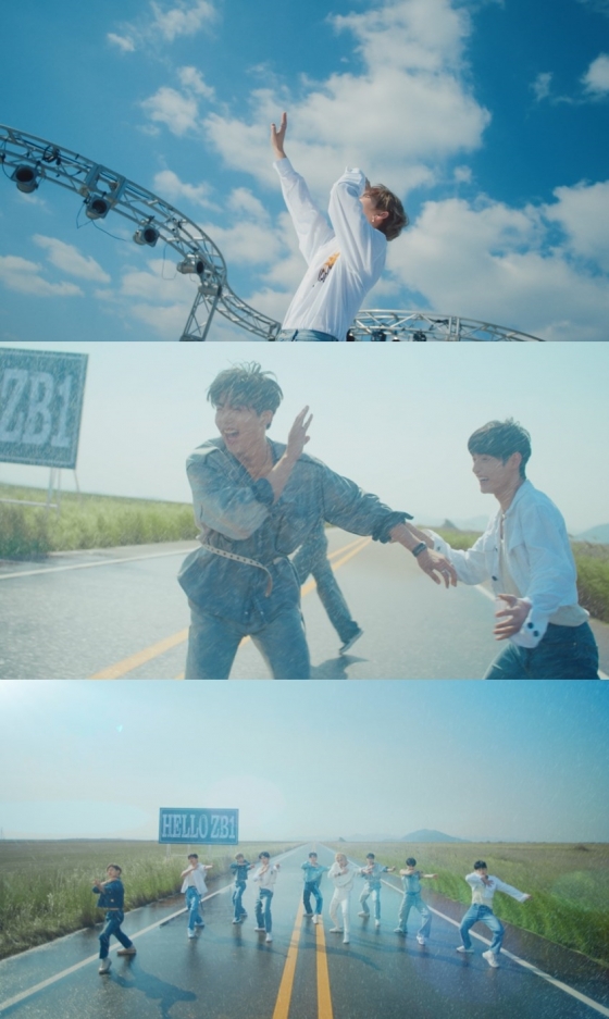 공개된 영상 속 ZEROBASEONE은 각자의 방식으로 태양의 뜨거움을 즐긴다. 이내 아홉 멤버는 'HELLO ZB1'이라는 이정표가 쓰인 도로 위에서 쏟아지는 비를 맞으며 군무를 추고 있다. 이들은 9인 9색 무공해 청정 비주얼과 함께 청량 에너제틱 바이브가 담긴 퍼포먼스를 완벽 소화해 컴백 기대감을 고조시켰다.