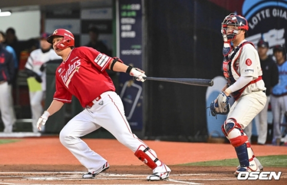 최정(37·SSG 랜더스)의 KBO 리그 홈런 신기록 달성은 하루 뒤로 밀리게 됐다. 사직 경기가 비로 인해 취소됐다.