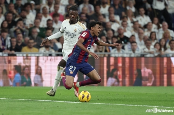 지난 22일 레알 마드리드와 바르셀로나는 스페인 라리가 32라운드 경기에서 맞붙었다. 팽팽히 맞서던 전반전 도중 바르셀로나 공격수 라민 야말(17)의 슈팅이 레알 마드리드 골문으로 향했다. 골키퍼 안드리 루닌(26)이 이를 간신히 쳐냈고, 심판은 코너킥을 선언했다.
