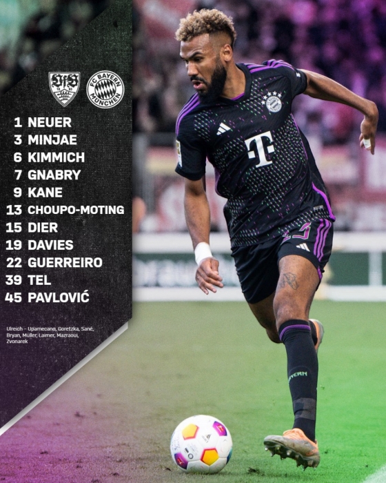 선발 명단이 공개됐다. 뮌헨은 해리 케인을 원톱에 두고 마티스 텔, 에릭 막심 추포 모팅, 세르주 그나브리를 2선에 배치했다. 하바엘 게히이루와 알렉산다르 파블로비치가 중원에 포진한다. 알폰소 데이비스, 김민재, 에릭 다이어, 요슈아 키미히가 포백을 맡는다. 골키퍼 장갑은 마누엘 노이어가 낀다.