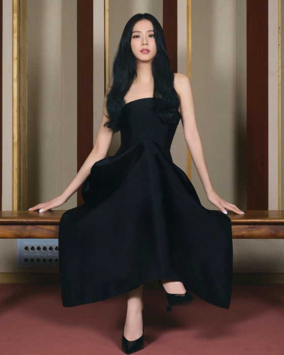 사진 속 지수는 매력을 발산하며 데님, 블랙 이브닝 드레스, 자수 디테일이 돋보이는 레드 드레스, 귀푸레 레이스, 투피스 등 다양한 의상을 완벽하게 소화했다.