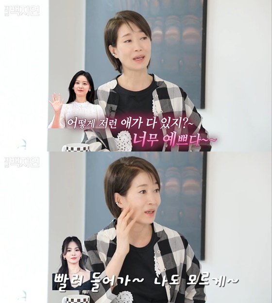나영희는 "현장에서 보고 '아 예쁘다', 정말 실물이 너무 예쁘다 하는 친구는 송혜교다. 보면 빨려 들어간다. 나도 모르게 이렇게 보게 된다. 참 예뻤다"라고 치켜세웠다.