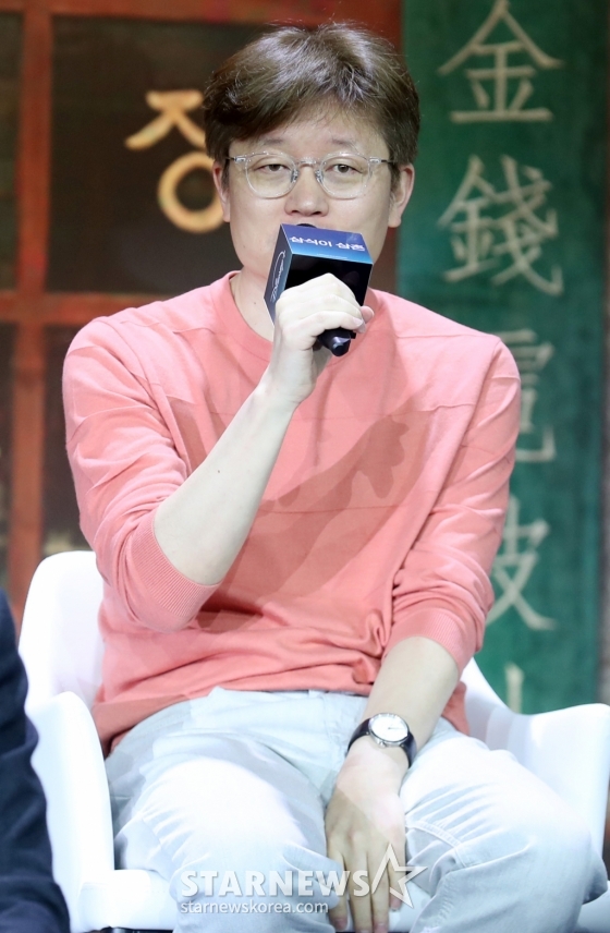 신연식 감독이 8일 오전 서울 강남구 그랜드인터콘티넨탈 파르나스 그랜드 볼룸에서 열린 디즈니+ 드라마 '삼식이 삼촌' 제작발표회에 참석해 인사말을 하고 있다.