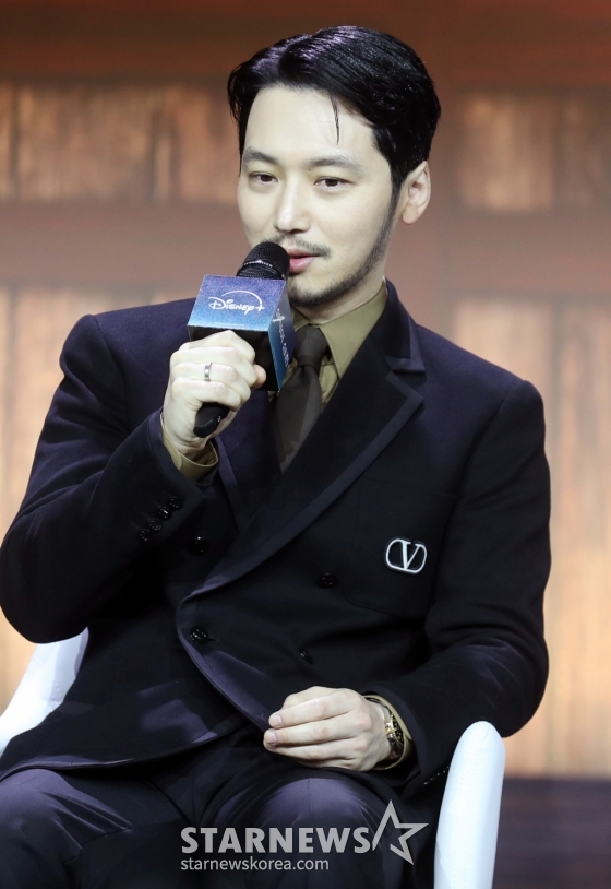 배우 변요한이 8일 오전 서울 강남구 그랜드인터콘티넨탈 파르나스 그랜드 볼룸에서 열린 디즈니+ 드라마 '삼식이 삼촌' 제작발표회에 참석해 인사말을 하고 있다.
