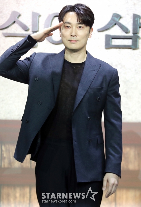 배우 서현우가 8일 오전 서울 강남구 그랜드인터콘티넨탈 파르나스 그랜드 볼룸에서 열린 디즈니+ 드라마 '삼식이 삼촌' 제작발표회에 참석해 포즈를 취하고 있다.