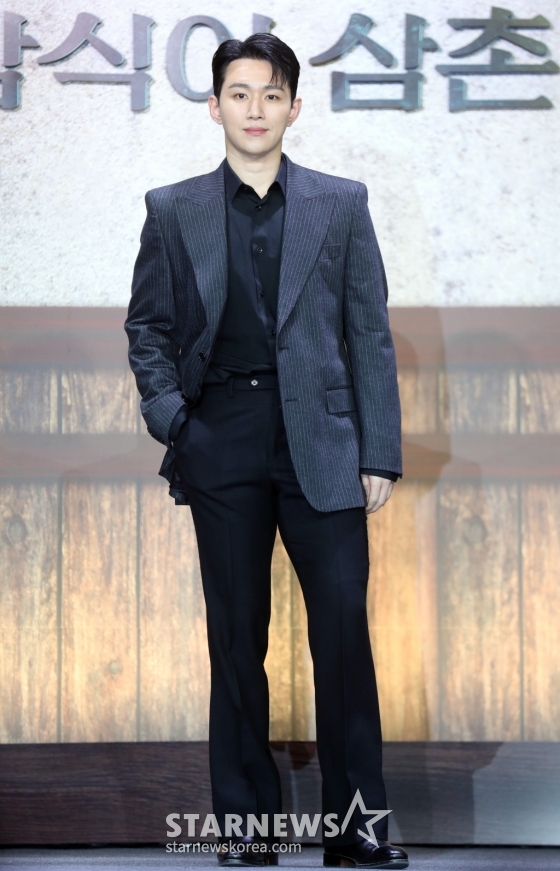 배우 오승훈이 8일 오전 서울 강남구 그랜드인터콘티넨탈 파르나스 그랜드 볼룸에서 열린 디즈니+ 드라마 '삼식이 삼촌' 제작발표회에 참석해 포즈를 취하고 있다.