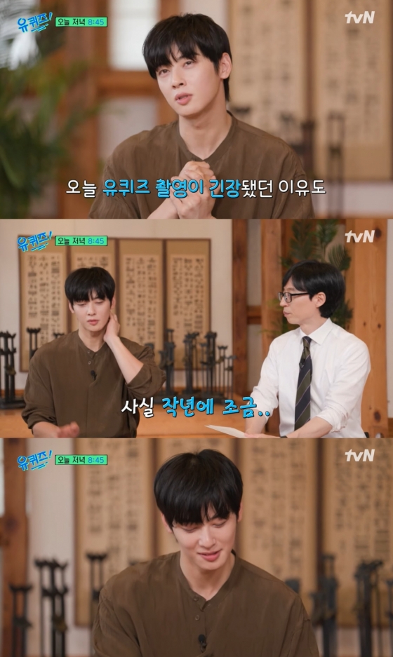 또한 그는 "'유퀴즈' 촬영이 긴장됐던 이유도 사실... 작년에 조금..."이라며 머뭇거리는 모습을 보였다. 차은우는 "내가 하고 싶은 얘기를 하고 싶었다. 너무 하고 싶었다. 가슴 속에서"라며 울컥했다. 과연 그가 하고 싶은 말은 어떤 말이었을지 주목된다.