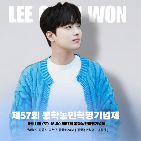 이찬원은 5월 11일 오후 6시 전북특별자치도 정읍시 동학농민혁명기념공원에서 열리는 제57회 동학농민혁명기념제 메인 무대에 오른다.