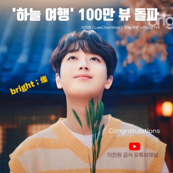 가수 이찬원의 '하늘 여행' 뮤직비디오가 100만 뷰를 달성하며 인기를 빛냈다.