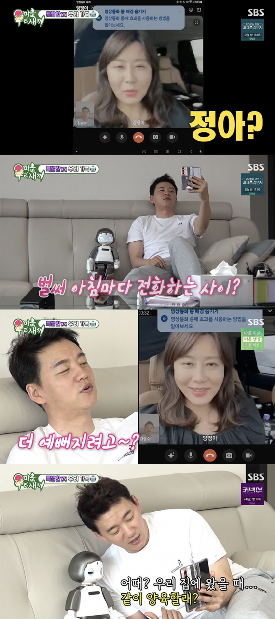 '미운 우리 새끼' 김승수가 양정아와 모닝 영상통화를 나눴다.