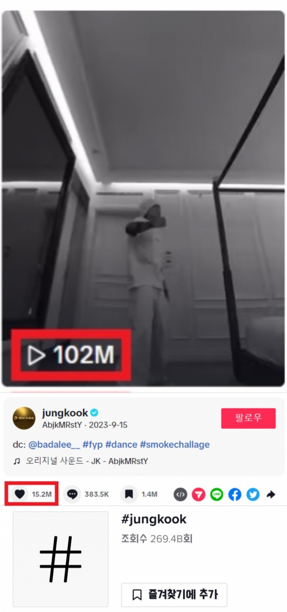 한편 정국은 틱톡에서 전 세계 솔로 아티스트 최초로 해시태그(#jungkook) 조회수 2694억을 돌파하며 막강 인기를 빛냈다.