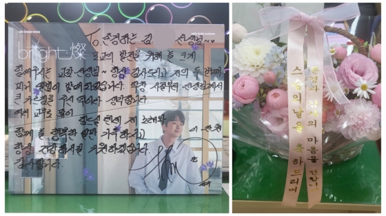가수 이찬원이 스승의 날을 맞아 모교 은사들에게 24개의 화환으로 감사를 전했다.