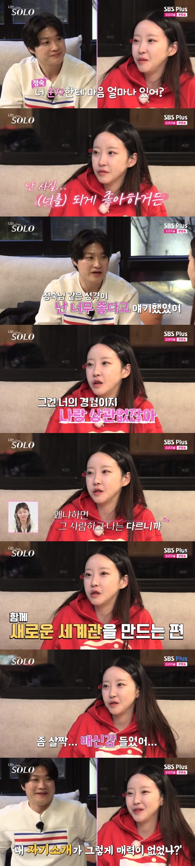 또 정숙은 영호에게 "순자한테 마음이 얼마나 있느냐?"라고 물었다. 영호는 "난 사실 널 되게 좋아하거든. 근데 좀 무서운 게 있어. 인터뷰 때도 이야기 했었는데 정숙 님 같은 성격이 되게 좋다고 이야기 했었다. 밝고 털털한 성격이 좋다고 했었다. 근데 그런 사람을 만났을 때 처절하게 차인 적이 몇 번 있었다"라고 고민했다.