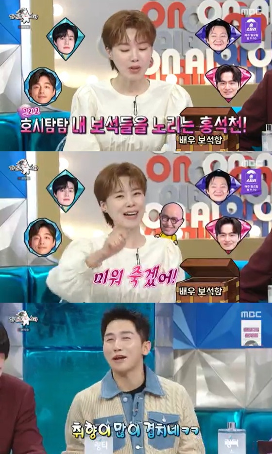 뒤이어 장도연은 "제 '배우 보석함'을 공개한다"라면서 "공유, 이동욱, 손석구 그리고 이진욱이다. 호시탐탐 내 보석들을 노리는 홍석천, 미워 죽겠다"라고 외쳤다.