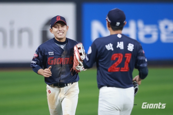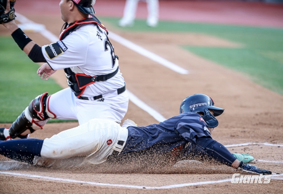 황성빈의 활약은 계속 이어졌다. 롯데가 여전히 1-0으로 앞선 3회초. 선두타자 이학주가 안타로 출루한 뒤 황성빈이 두 번째 타석에 들어섰다. 무사 1루였기에 희생 번트가 예상되는 상황. 그런데 황성빈은 투수 쿠에바스와 1루수 사이로 절묘하게 번트를 갖다 댔고, 본인도 재차 전력 질주를 펼친 뒤 헤드 퍼스트 슬라이딩을 시도하며 세이프에 성공했다. 황성빈 특유의 집념이 다시 한번 돋보인 순간이었다. 황성빈은 다음 타자 고승민의 적시타 때 3루까지 갔지만, 후속타가 터지지 않으면서 득점에는 실패했다.