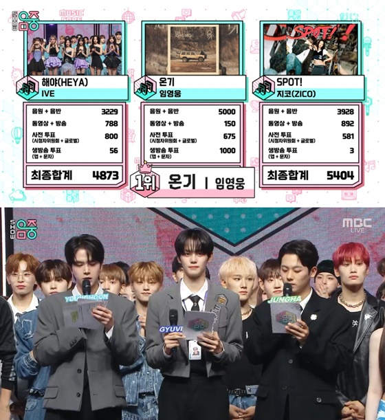 이날 1위 후보에는 아이브 '해야(HEYA)', 임영웅 '온기', 지코 '스팟!(SPOT!)'이 이름을 올린 가운데 트로피의 주인공은 임영웅에게 돌아갔다.